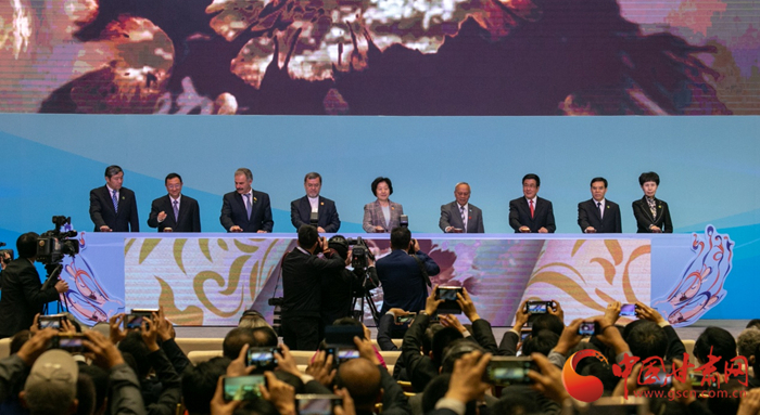首屆絲綢之路(敦煌)國(guó)際文化博覽會(huì)于2016年9月20日在敦煌市隆重舉行。國(guó)家主席習(xí)近平發(fā)來(lái)賀信,對(duì)敦煌文博會(huì)的召開(kāi)致以熱烈的祝賀,向出席敦煌文博會(huì)的各國(guó)嘉賓和朋友表示誠(chéng)摯的歡迎。時(shí)任中共中央政治局委員、國(guó)務(wù)院副總理劉延?xùn)|出席開(kāi)幕式宣讀習(xí)近平賀信并發(fā)表主旨演講。來(lái)自85個(gè)國(guó)家、5個(gè)國(guó)際和地區(qū)組織的95個(gè)代表團(tuán)應(yīng)邀出席,66個(gè)外國(guó)機(jī)構(gòu)、434位國(guó)外賓客參加論壇、文化年展和文藝演出,國(guó)內(nèi)16個(gè)省區(qū)市和港澳臺(tái)地區(qū)23個(gè)代表團(tuán)共計(jì)1700多位中外嘉賓參會(huì)。6位外國(guó)政要、前政要出席開(kāi)幕式并發(fā)表演講,23國(guó)文化部長(zhǎng)和代表出席了圓桌會(huì)議,討論并通過(guò)了《敦煌宣言》。