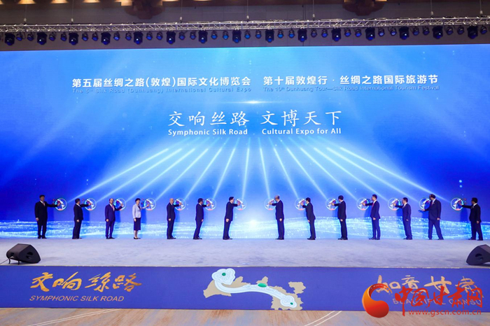 第五屆絲綢之路(敦煌)國(guó)際文化博覽會(huì)和第十屆敦煌行·絲綢之路國(guó)際旅游節(jié)于2021年9月24日—26日在甘肅省敦煌市隆重舉行。中共中央政治局委員、中央書(shū)記處書(shū)記、中宣部部長(zhǎng)黃坤明以視頻形式出席開(kāi)幕式暨高峰會(huì)議并發(fā)表主旨演講,300多名國(guó)外、國(guó)際組織及國(guó)內(nèi)省區(qū)市代表現(xiàn)場(chǎng)參加會(huì)議,400多萬(wàn)網(wǎng)友線上參加有關(guān)活動(dòng)。大會(huì)以習(xí)近平新時(shí)代中國(guó)特色社會(huì)主義思想為指導(dǎo),認(rèn)真落實(shí)“一帶一路”倡議,以線上線下相結(jié)合的方式舉辦一系列主體活動(dòng),有力促進(jìn)絲路沿線各國(guó)文化交流與旅游合作,有效增進(jìn)文化認(rèn)同與情感共鳴,是一次展示中國(guó)文化自信、共商“一帶一路”建設(shè)、推動(dòng)文旅融合發(fā)展的盛會(huì),是一次提升甘肅對(duì)外影響力、展示開(kāi)放新形象、凝聚發(fā)展新動(dòng)力的盛會(huì),得到了國(guó)際社會(huì)的廣泛贊譽(yù)和一致好評(píng)。