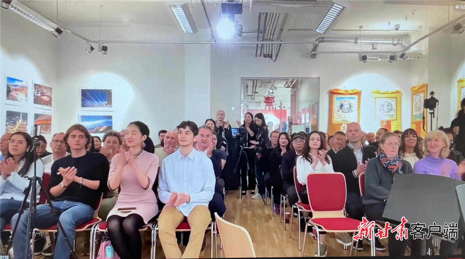 在奧地利維也納參會(huì)觀眾正在收看原創(chuàng)MV《我畫(huà)個(gè)甘肅給你看下》。