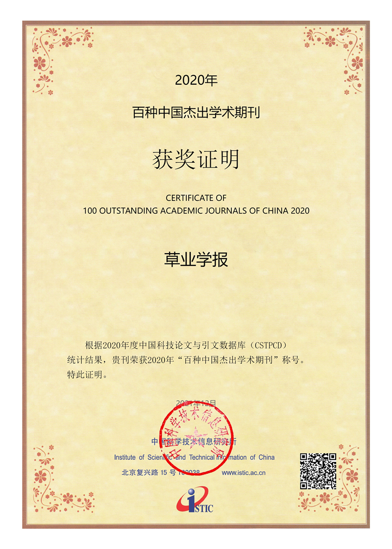 12月29日,中國科學(xué)技術(shù)信息研究所發(fā)布《2022年中國科技論文統(tǒng)計報告》,并評選出“2021年度中國百種杰出學(xué)術(shù)期刊”,其中甘肅省2種,分別是:中國草原協(xié)會、蘭州大學(xué)草地農(nóng)業(yè)科技學(xué)院主辦的《草業(yè)學(xué)報》,中科院寒旱所主辦的《高原氣象》。