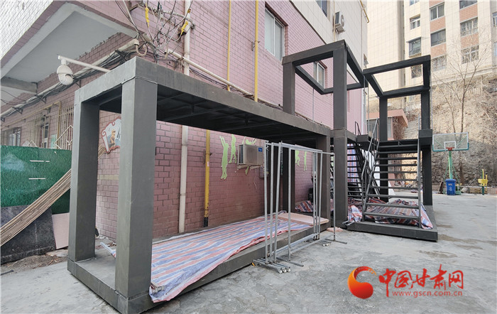 在甘肅省歌劇院辦公樓的西側,一組五米高的兩層鋼架結構赫然出現(xiàn)在記者眼前,這組“大家伙”前后制作了兩三個月時間,光是使用的角鋼就有一兩噸重,而舞臺上極具視覺沖擊力的“九宮格”截面圖,就是通過三組移動支架,儼然拼積木般進行位移組合來完成的。同時,通過位置的偏移,還將實現(xiàn)宿舍、工地、工棚以及生活場景的轉換。