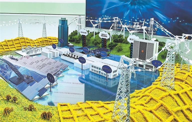 在國家電網(wǎng)展館展出的甘肅省武威市古浪縣八步沙“電沙成金”——沙漠能源生態(tài)圈品牌。本版圖片均由新甘肅·甘肅日?qǐng)?bào)記者王占東攝