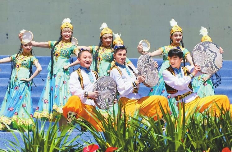隨著曼妙激昂的舞蹈《石榴花開》上演,這場屬于“花兒”的盛會正式啟幕。隨后,《雪白的鴿子》《巴西古溜溜》、優(yōu)雅大氣的舞蹈《吉祥歡歌》《絲路民族風》《今夜草原有雨》《白牡丹令》等經典歌舞節(jié)目精彩上演,贏得臺下陣陣掌聲。甘肅籍民謠歌手張尕慫帶來的《等風來》更是將現場氣氛推向高潮,來自各個民族的數千觀眾沉浸在這場非遺文化盛宴中。