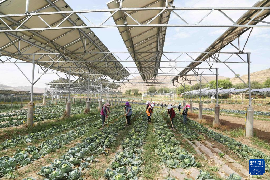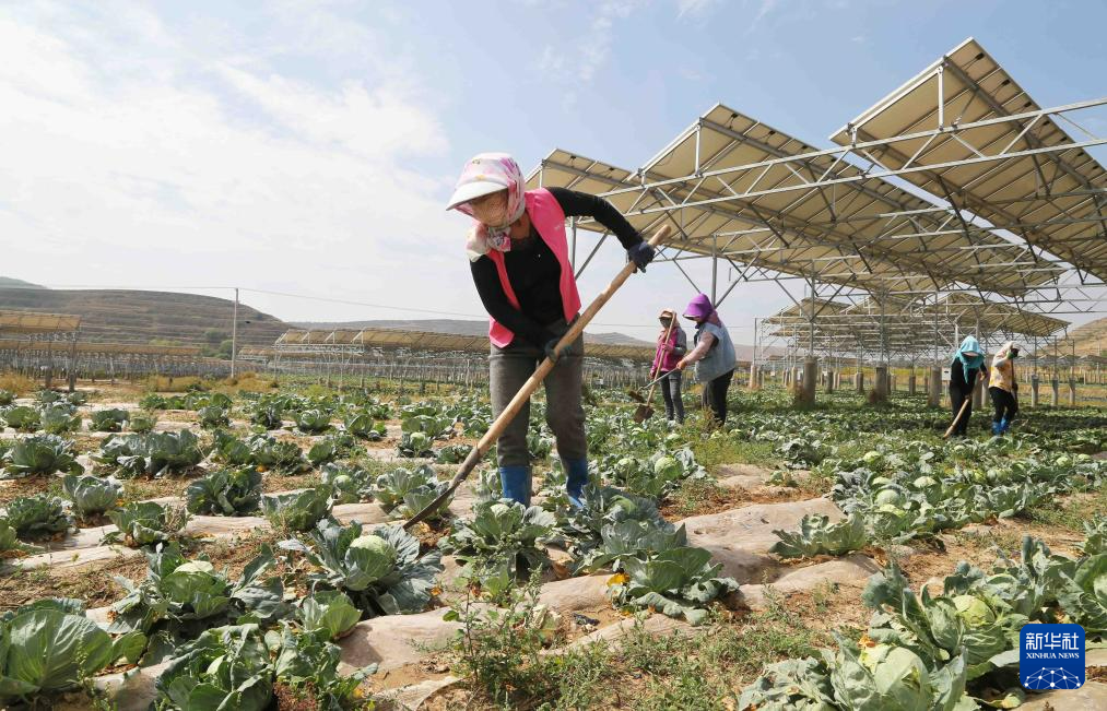 9月9日,農(nóng)民在通渭縣榜羅鎮(zhèn)四新村光伏農(nóng)業(yè)產(chǎn)業(yè)示范園的蔬菜地里勞作。新華社發(fā)(王克賢 攝)