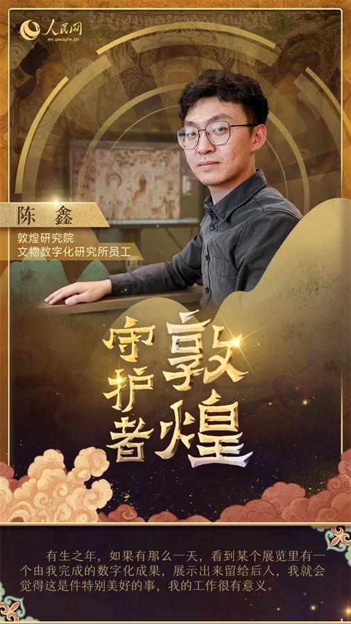 在敦煌研究院文物數(shù)字化研究所,工作人員們正開展數(shù)字化項目,將莫高窟的壁畫和雕塑變成數(shù)字化產(chǎn)品。陳鑫就是其中一員,在文物數(shù)字化研究所工作的四年,他負(fù)責(zé)壁畫的數(shù)字化處理。“我們的目標(biāo)是利用現(xiàn)代技術(shù)保護(hù)這些文物,讓它們活起來并傳承下去,讓我們的后代能夠看到它們。”