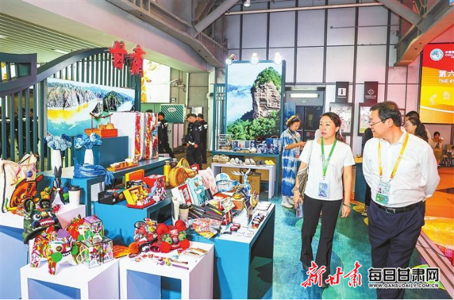 為更好推動優(yōu)秀傳統(tǒng)文化創(chuàng)造性轉(zhuǎn)化、創(chuàng)新性發(fā)展,全面展示甘肅省非遺、文創(chuàng)最新成果,推動文旅貿(mào)深度融合,我省以“交響絲路·如意甘肅”為主題,在進博會人文交流展區(qū)搭建甘肅省展區(qū),展示蘭州黃河鐵橋、天水麥積山、平?jīng)鲠轻忌?、九色甘南扎尕那、張掖七彩丹霞、嘉峪關(guān)關(guān)城、隴南官鵝溝等甘肅省熱門景區(qū)圖片,全方位立體式向與會嘉賓展示甘肅厚重的文化底蘊和豐富的旅游資源。