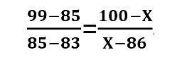 舉例說明:假如小王的地理科目原始成績?yōu)?5分,在當(dāng)年全省參加該科目考試的考生中位于前2.5%,根據(jù)上表,該成績位列A等級,該等級的賦分區(qū)間為100-86分。根據(jù)考生原始成績的分布,可知A等級的原始分?jǐn)?shù)區(qū)間(假設(shè)為99-83分),那么小王地理科目的賦分成績(X)可通過如下公式計算: