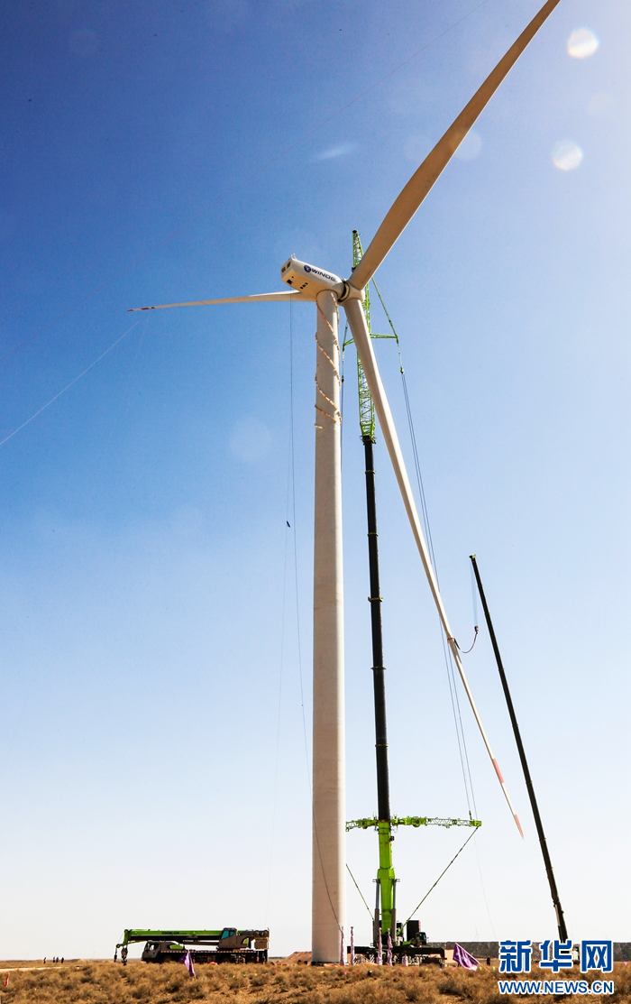 近日,在甘肅省張掖市甘州區(qū)平山湖20千瓦風(fēng)電施工現(xiàn)場(chǎng),工人們緊張有序地進(jìn)行風(fēng)電設(shè)備安裝工作。新華網(wǎng)發(fā)(陳禮 攝)