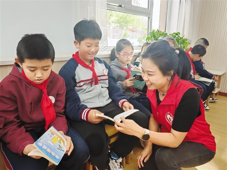 聽志愿者娓娓道來,孩子們興趣漸濃,紛紛被書中精彩的故事和人物所吸引,社工王樹清、戎笑辰還和同學(xué)們結(jié)成了“讀書搭子”,約定定期分享好書和閱讀感悟。“讓孩子們?cè)诜窒砘?dòng)中激發(fā)閱讀熱情,可以更好地理解和感受書籍中的世界,對(duì)他們成長非常有幫助。”王樹清說。
