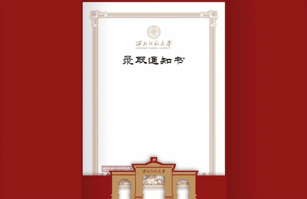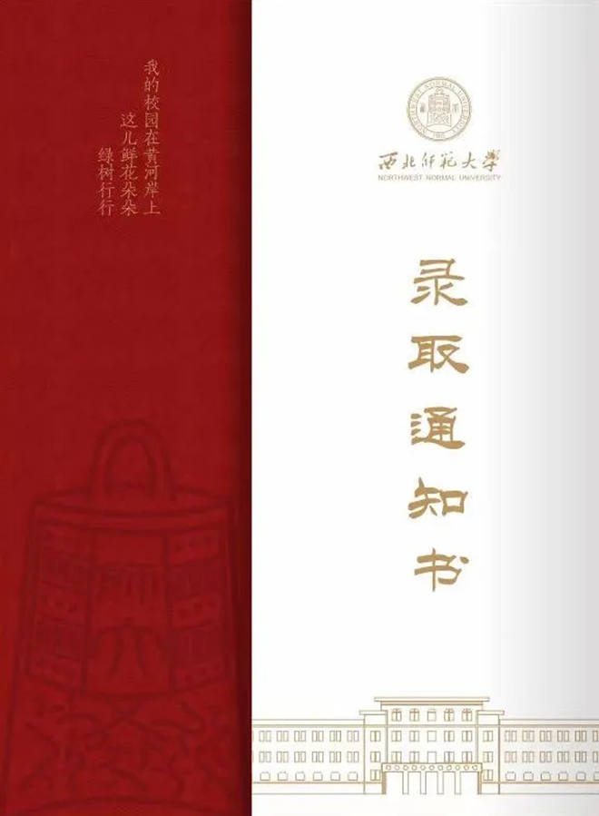 2024年的本科生錄取通知書外層依然延續(xù)了傳統(tǒng)師大紅,搭配金色的文字,盡顯莊重大氣。內(nèi)里以白色為底,淺棕色為框,百廿師大的厚重底蘊(yùn)躍然紙上。