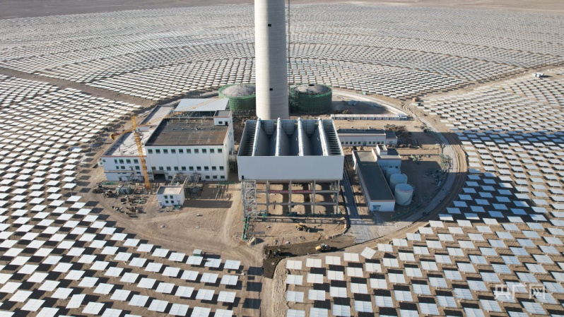 中光太陽能“10萬千瓦光熱+60萬千瓦光伏”項目現(xiàn)場(央廣網(wǎng)發(fā) 金塔縣委宣傳部供圖)