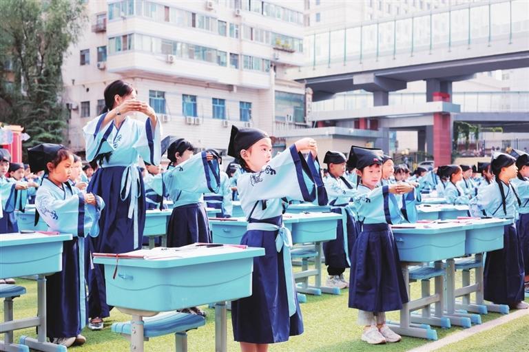 中國(guó)甘肅網(wǎng)9月2日訊 據(jù)蘭州晨報(bào)報(bào)道(奔流新聞·蘭州晨報(bào)記者裴強(qiáng)) 8月30日,蘭州市七里河教育集團(tuán)為七里河小學(xué)和中車分校的600名一年級(jí)新生舉行入學(xué)“開筆禮”儀式。開筆禮在中國(guó)傳統(tǒng)文化中是對(duì)少兒識(shí)字習(xí)禮的稱謂,是標(biāo)志少兒進(jìn)入學(xué)習(xí)階段的重要紀(jì)念,是中國(guó)古代人生的首次大禮,孩子將要入學(xué)讀書寫字、習(xí)禮之時(shí)的一個(gè)傳統(tǒng)禮節(jié)。兩所學(xué)校600名一年級(jí)新生“端正衣冠”“感恩先賢”“朱砂啟智”“擊鼓鳴志”“啟蒙描紅”,體驗(yàn)傳統(tǒng)“開筆禮”儀式。