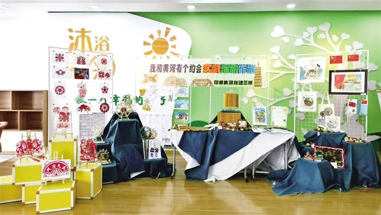 開學(xué)伊始,蘭州市城關(guān)區(qū)牟家莊小學(xué)在學(xué)校一樓大廳的小舞臺(tái)上精心布置以“‘暑’我不一樣,實(shí)踐助成長·我和黃河有個(gè)約會(huì)”為主題的“暑期實(shí)踐活動(dòng)成果”作品展,同學(xué)們用廢舊材料自制的水車、精美的蘭州剪紙、蘭州牛肉面文創(chuàng)產(chǎn)品等代表著蘭州文化特色的作品琳瑯滿目、種類豐富,來往的師生都情不自禁地駐足欣賞,感受家鄉(xiāng)文化的魅力。