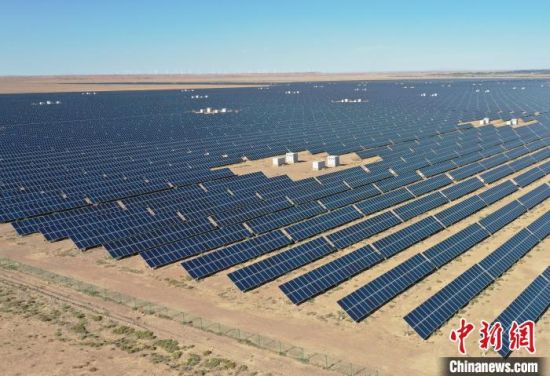 航拍視角下,金昌市西坡光伏產(chǎn)業(yè)園區(qū)內的光伏發(fā)電陣列。(資料圖)國網(wǎng)甘肅省電力公司調度控制中心供圖