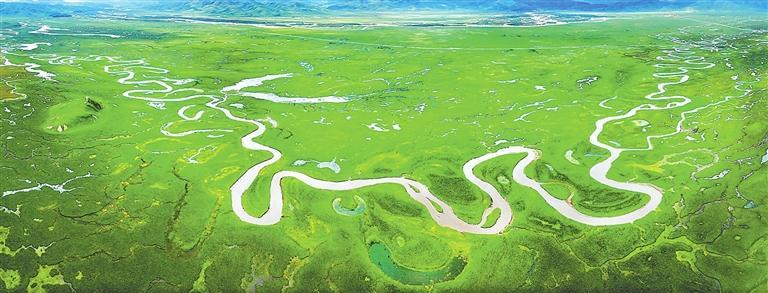 “瑪曲,藏語中就是‘黃河’的意思,黃河從這里積蓄了前行的能量。”金道才讓指著眼前的阿萬倉濕地說,草皮下豐富的植物根系和土壤就像無數(shù)的毛細血管,源源不斷為黃河提供水源補給。