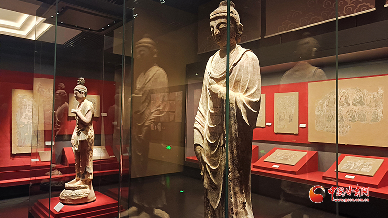 武威市博物館“天梯神韻涼州佛光”——天梯山石窟專(zhuān)題展被譽(yù)為“藏在博物館的石窟寺”,展品有天梯山石窟搬遷修復(fù)后的壁畫(huà)和彩塑等文物76件。