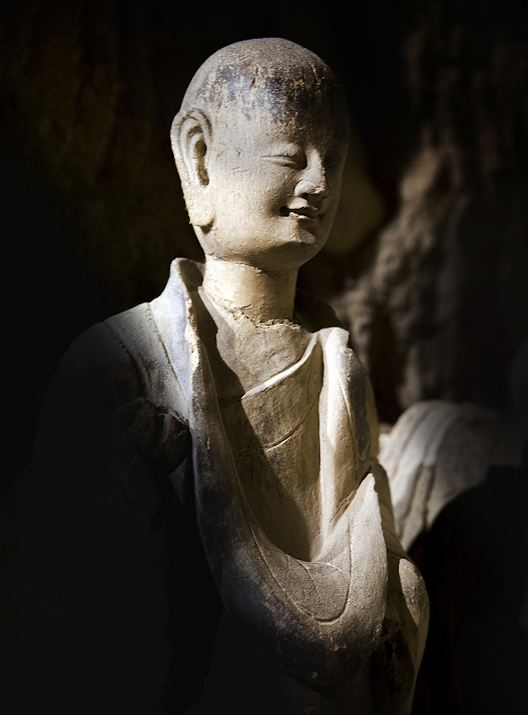 麥積山石窟始建于384-417年,現(xiàn)存有221座洞窟、10632身泥塑石雕、1300余平方米壁畫。麥積山石窟的獨特之處在于,雕塑的人物形象沖破了佛像造型的固有風(fēng)格,不再莊重嚴(yán)肅,更加貼近生活,充滿人間溫度。