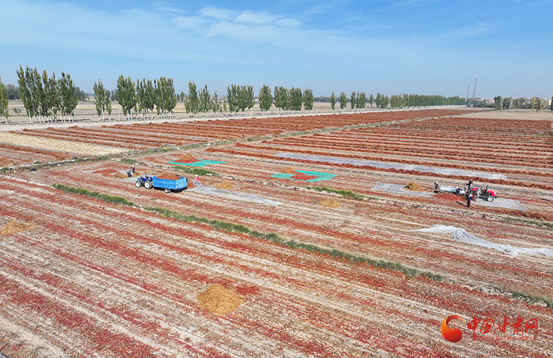 “我們種植的辣椒品種主要是朝天椒,成熟后需要先割倒擺放在壟溝上晾曬,一方面是辣椒干透后機(jī)械脫粒,另一方面也是為了防霜凍。這些朝天椒都是訂單辣椒,等過(guò)幾天曬好后由企業(yè)統(tǒng)一收購(gòu),直接運(yùn)走,每畝產(chǎn)量500公斤左右,每畝收益能達(dá)到5000元以上。”種植大戶韓克紅說(shuō)。