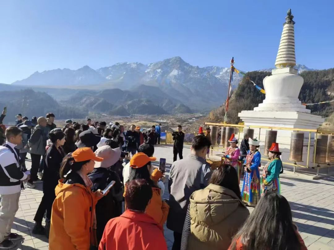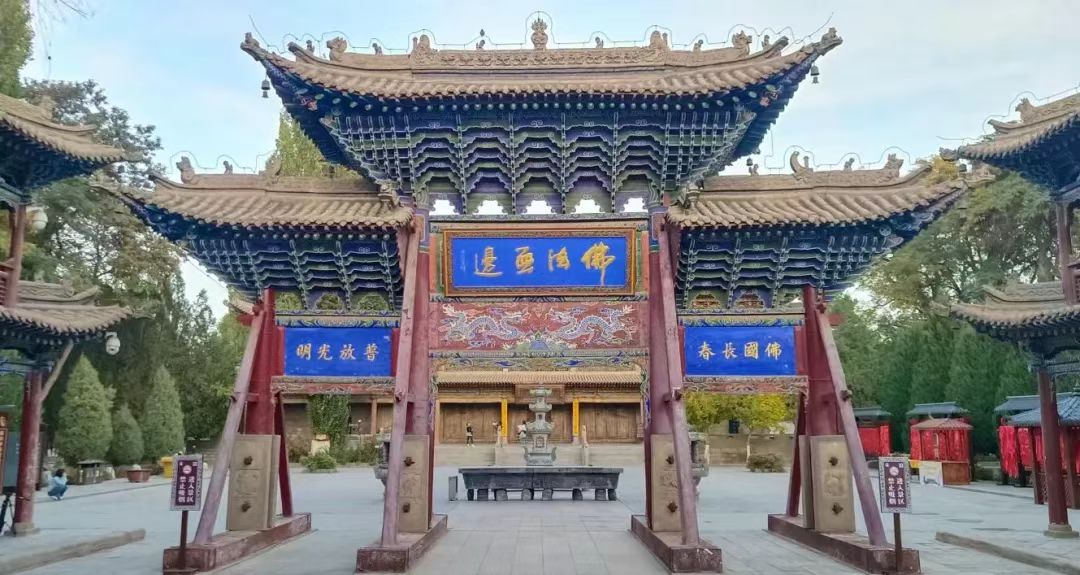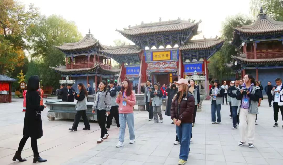 18日上午,迎著耀眼的晨光,采訪團(tuán)成員乘坐大巴車來到了集自然風(fēng)光、石窟藝術(shù)、民族風(fēng)情、宗教文化于一體的肅南馬蹄寺。馬蹄寺是河西走廊著名的佛教勝地,石窟群開鑿于十六國北涼時期,距今約1600年的歷史,是絲綢之路上至關(guān)重要的歷史文化瑰寶,也是我國早期石窟的杰出代表。秋日的馬蹄寺,秋高氣爽,景色宜人,遠(yuǎn)遠(yuǎn)看去,紅綠相間,層林盡染,大家行走在落葉飄零的山間小路上,對這座建在懸崖峭壁之上、將棧道鑲嵌在山體之內(nèi)的石窟充滿了好奇。