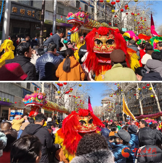 社火表演內(nèi)容豐富多樣、精彩紛呈。現(xiàn)場的笑聲、喝彩聲不斷。此外,威風的關公扮相,將福氣傳遞給市民,巨龍盤旋騰飛、獅子翻騰跳躍的舞龍舞獅更是吸睛,觀眾紛紛上前摸獅頭、鉆龍身,祈愿新的一年平安順遂。現(xiàn)場市民都沉浸在無盡的歡樂與喜悅之中,孩子們在人群中歡呼雀躍,大人們也紛紛掏出手機,記錄下這難忘的瞬間,臉上綻放著幸福的光彩。
