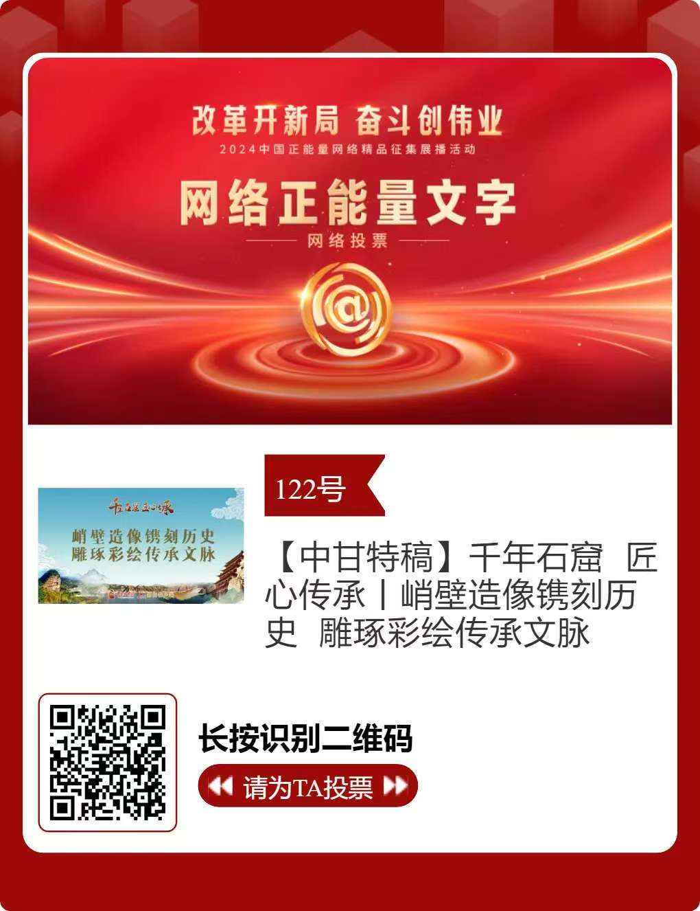 2024中國正能量網(wǎng)絡(luò)精品,武威入圍作品邀您投票!