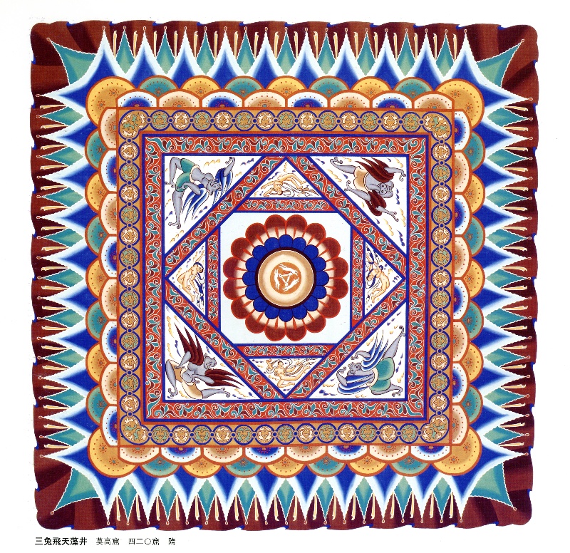 莫高窟,這座屹立于絲路要沖的藝術(shù)寶庫,承載著無數(shù)先人的智慧與夢想。其中,第407窟窟頂?shù)纳徎ㄈ迷寰?/span>是隋代具有代表性的藻井圖案之一。