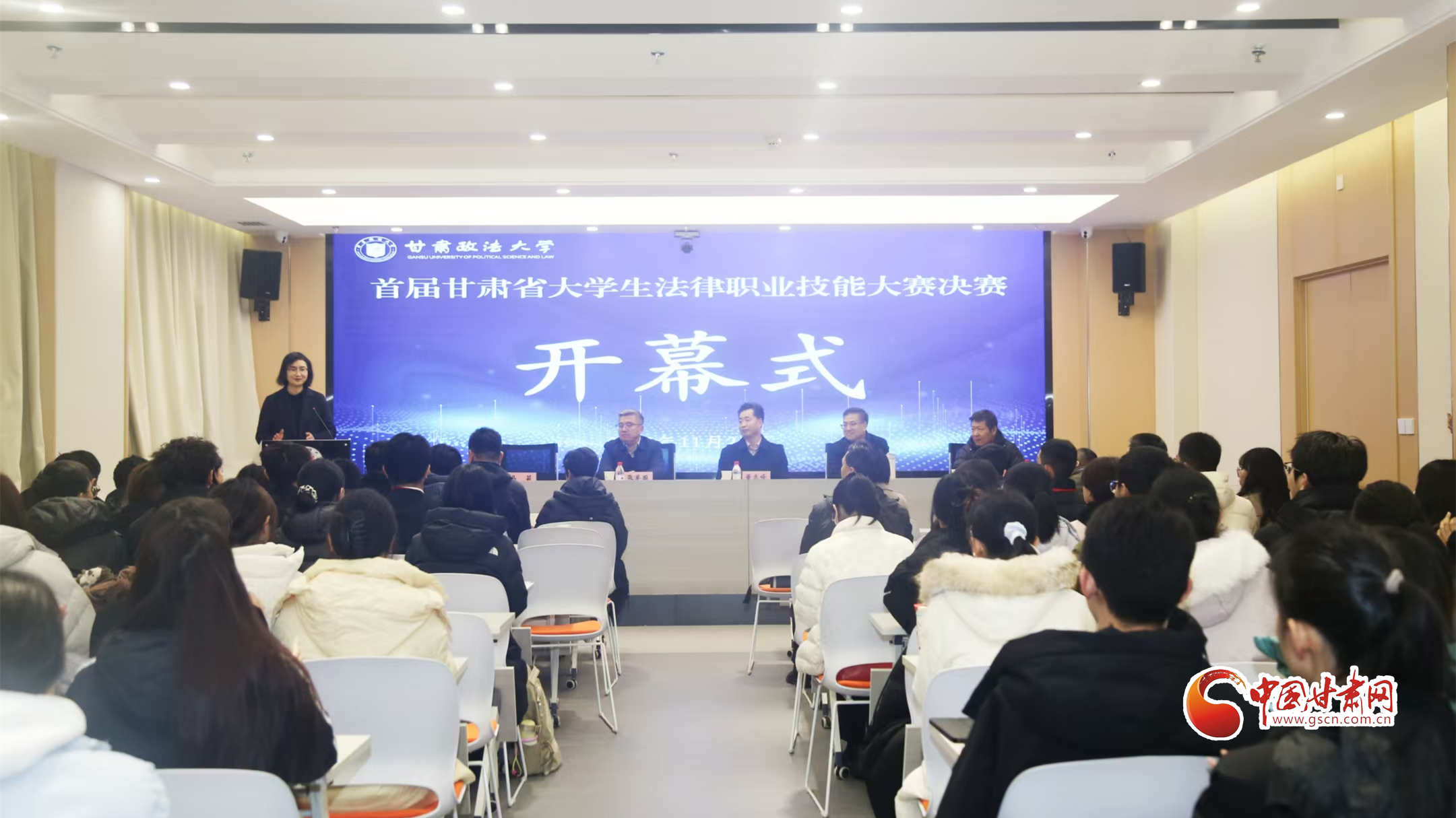 中國甘肅網(wǎng)11月22日訊(西北角·中國甘肅網(wǎng)記者 程?。?1月22日上午,首屆甘肅省大學(xué)生法律職業(yè)技能大賽決賽開幕式在甘肅政法大學(xué)舉行。來自蘭州大學(xué)等7所高校的48支賽隊、200余名師生齊聚一堂,共同開啟這場法治實務(wù)“大練兵”。