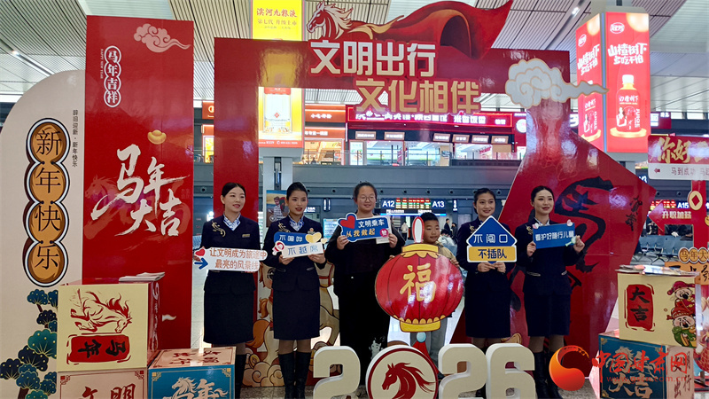 中國甘肅網(wǎng)2月2日訊(西北角·中國甘肅網(wǎng)記者 宋芳科)2月2日,2026年鐵路春運大幕正式拉開。為營造平安、有序、溫馨的出行環(huán)境,2月2日,蘭州鐵路公安處聯(lián)合國鐵蘭州局在蘭州西站舉辦了以“平安春運、有序春運、溫馨春運,讓旅客體驗更美好”為主題的春運首日宣傳活動?;顒油ㄟ^文藝展演、安全宣傳、法律援助與暖心服務(wù)等舉措,全面展現(xiàn)了蘭州鐵路部門護航春運的堅定決心與有力舉措。