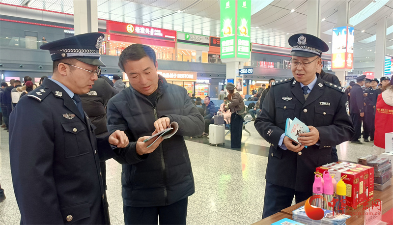 上午9時,蘭州西站候車大廳內(nèi)暖意融融、人流有序。一場簡短而溫馨的文藝表演拉開了活動序幕,為匆匆旅途增添了濃厚的節(jié)日氛圍與人文關(guān)懷。隨后,聚焦春運核心主題,蘭州西站派出所開展“平安相伴·鐵警相隨”主題安全宣傳活動。民警在法治宣傳展臺前,耐心細致地向旅客講解最新鐵路安全管理規(guī)定、禁限帶物品目錄以及電子客票使用須知等內(nèi)容,并發(fā)放宣傳資料,現(xiàn)場解答疑問,助力旅客平安出行。