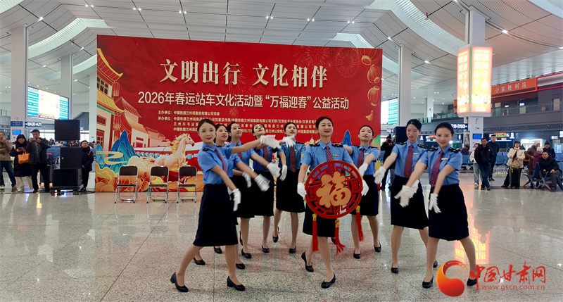春運(yùn)首日,國鐵蘭州局在蘭州西站、銀川站、嘉峪關(guān)南站等車站開展“文明出行 文化相伴”特色活動(dòng),通過贈(zèng)送春聯(lián)福字、文明出行倡議簽名及簡(jiǎn)約文藝展演,為候車旅客營造濃厚年節(jié)氛圍。