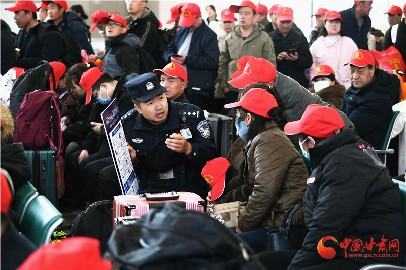 這批務(wù)工人員來(lái)自定西市各縣區(qū),既有復(fù)崗務(wù)工人員也有新聘崗務(wù)工人員,為鋪就這條溫暖返崗路,蘭州鐵路公安處定西北站派出所積極與定西北車站、客運(yùn)部門通聯(lián),專門開(kāi)辟綠色通道,暢通進(jìn)站、安檢、檢票等進(jìn)站環(huán)節(jié),劃定專門候車進(jìn)站區(qū)域,同時(shí),增派警力逐一引導(dǎo)務(wù)工人員有序進(jìn)站,幫助提拿大件行李,講解防范電信詐騙小妙招,進(jìn)一步保障了務(wù)工團(tuán)體旅客乘車安全。