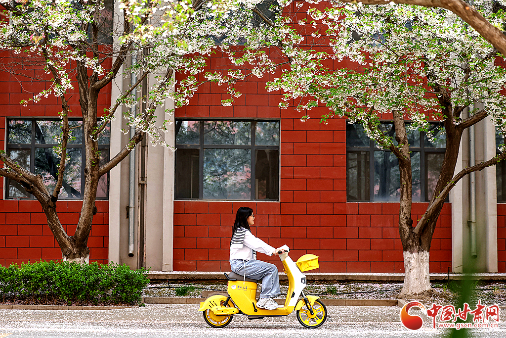 4月5日,蘭州大學(xué)校園內(nèi)櫻花盛開。