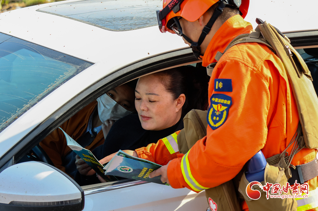 甘肅消防救援機(jī)動(dòng)總隊(duì)蘭州支隊(duì)消防救援人員向進(jìn)山群眾普及防火常識(shí)