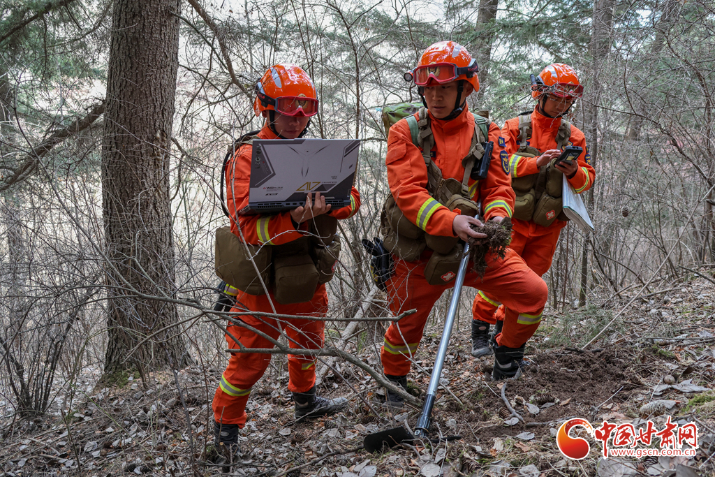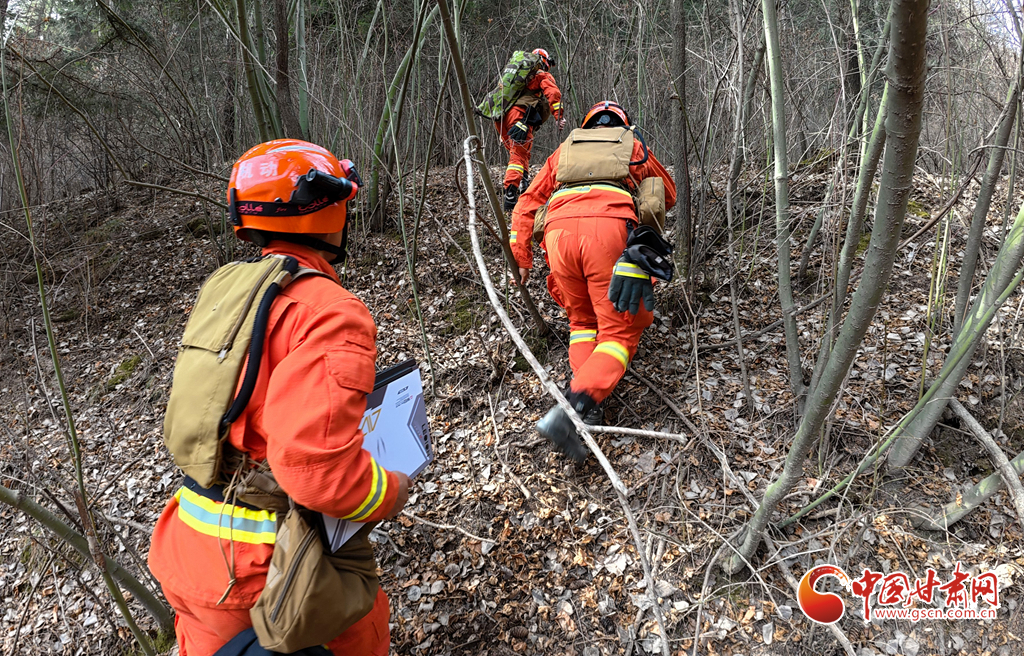 甘肅消防救援機(jī)動(dòng)總隊(duì)蘭州支隊(duì)消防救援人員在連城國家級(jí)自然保護(hù)區(qū)竹林溝進(jìn)行勘察