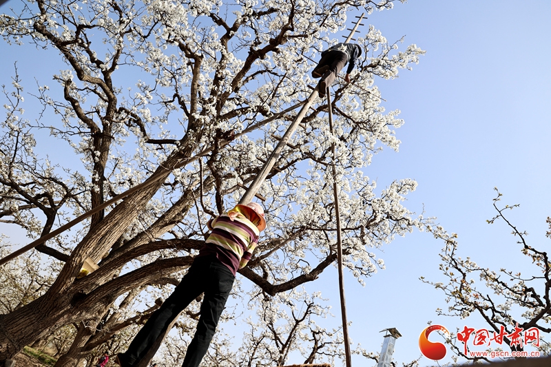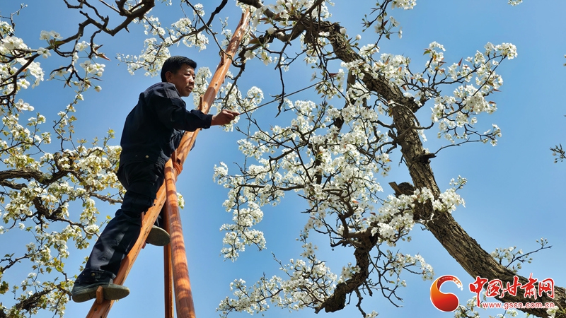 中國甘肅網(wǎng)4月9日訊(西北角·中國甘肅網(wǎng)記者 余守萱 實習(xí)生 趙曉彤)春賞梨花勝雪,秋品碩果飄香。9日上午,記者跟隨“梨韻什川·美麗皋蘭”梨花季特色文旅活動走進皋蘭縣什川鎮(zhèn)上車村。據(jù)介紹,這片擁有萬畝面積、近萬株百年以上古梨樹的“世界第一古梨園”,正悄然發(fā)生著一場傳統(tǒng)與現(xiàn)代交織的奇妙變化。在這里,一部手機就能解鎖梨園的前世今生,一根長竿則承載著幾百年不衰的農(nóng)耕智慧。