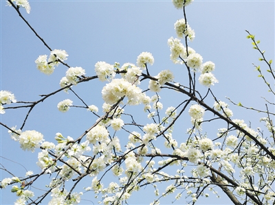 這棵早李很矮小,還沒有我的個(gè)子高。我還有一棵李樹,是江安李,樹齡有15年,就高大多了。一個(gè)月以后,江安李就會(huì)開花了。不像早李開花這么羞澀,它一大團(tuán)一大團(tuán)地開,在藍(lán)天之下就像燦爛的積雪。這兩棵李樹的先后開花,正是春天巨人淺一腳深一腳踩過我的小花園留下的腳印,前一腳淺,后一腳深。無論深淺,雁過留影,都會(huì)濺起美麗的白霜或積雪。而且,這腳印還深深地留在每朵李花的子房里,先開的早李苦澀,后開的江安李甜美,它們記錄了春天里的掙扎和怒放。
