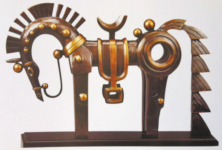 “韓美林的雕塑不斷涌現(xiàn),讓我們看到了以韓美林為代表的具有中國特點的裝飾性雕塑自成體系。當‘中國學派’閃現(xiàn)在人們面前的時候,不僅讓人們眼睛為之一亮,而且使人們心頭為之一振,因為他給予人們多年來企盼‘中國學派’的心情以現(xiàn)實的安慰。讓人們看到了‘東方既白’。而這反映在中國雕塑的當代發(fā)展中,暗示著一種發(fā)展的方向。”