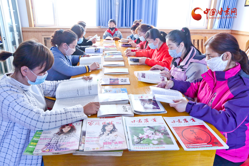 4月21日,甘肅張掖甘州區(qū)火車站街道下安村農(nóng)家書屋內(nèi)農(nóng)戶們在閱覽室里看書。