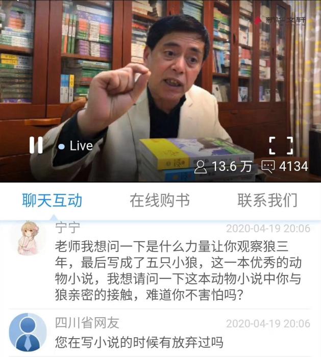 時間的指針再往回?fù)?,此前,作家沈石溪開啟直播形式的線上課程,累計有超過14萬人觀看,當(dāng)天他的作品《狼王夢》賣出1萬多冊,碼洋超過30萬元。