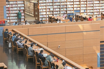 國慶假期期間,讀者正在國家圖書館內閱讀。