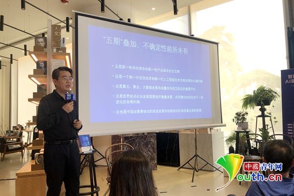 《智能經濟》新書研討會上,張曉峰在進行主題演講。中國青年網記者 張詩瑩 攝