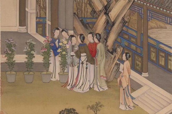 清代陳枚《月曼清游圖》之“重陽(yáng)賞菊”局部