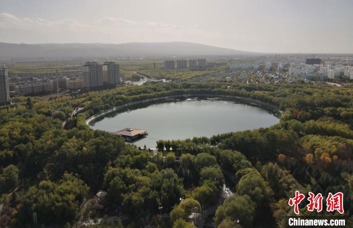 2020年7月,俯瞰甘肅嘉峪關(guān)東湖生態(tài)旅游景區(qū),該景區(qū)是國家級4A旅游風(fēng)景區(qū),滿眼綠意惹人醉。(資料圖) 丁思 攝