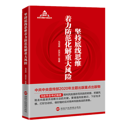 《堅持底線思維著力防范化解重大風險》是該系列叢書的總論,由中央黨校(國家行政學院)副校長應急管理培訓中心(中歐應急管理學院)主任(院長)馬寶成等合作撰寫,現(xiàn)已由國家行政管理出版社正式出版發(fā)行。