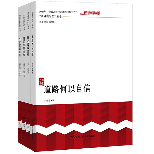 本套叢書是教育部慶祝建黨百年行動理論研究專項(xiàng)重大成果之一,入選國家新聞出版署2020年“優(yōu)秀通俗理論讀物出版工程”、教育部全國高校出版社主題出版選題,為教育系統(tǒng)“加強(qiáng)‘四史’學(xué)習(xí)研究教育攻堅(jiān)行動”特別是黨史學(xué)習(xí)教育提供了學(xué)習(xí)教材。其中,《道路何以自信》作者為北京大學(xué)陳培永研究員,《理論何以自信》作者為中國人民大學(xué)秦宣教授,《制度何以自信》作者為清華大學(xué)肖貴清教授,《文化何以自信》作者為武漢大學(xué)沈壯海教授。
