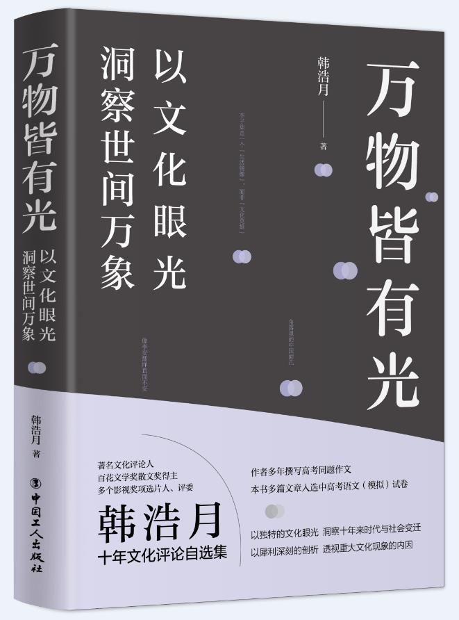 近日,文化評論人韓浩月新作《萬物皆有光》由中國工人出版社出版。韓浩月深耕于文化領域評論,對文化熱點、現象與人物的評論有自己獨到的視角與見解。本書是其近十年來發(fā)表于各大媒體的評論精選集。
