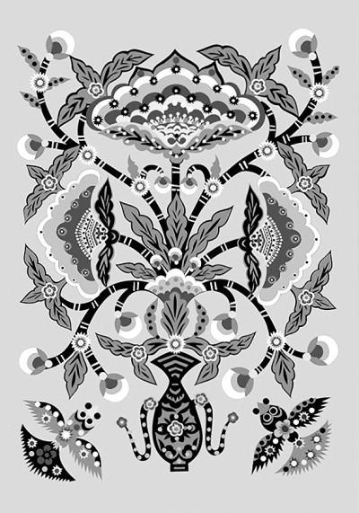花園意象,還會讓人聯(lián)想到中國文化的詩意棲息地。民間四大愛情傳說中,許仙白娘子相會于山水演漾的西湖;牛郎織女定情于綠翠紅鮮的湖邊花叢;孟姜女萬喜良邂逅于幽靜的后花園;梁山泊祝英臺更有十八相送的山水樓臺……溫馨的愛情都發(fā)生在花園之中。大小傳統(tǒng)糅合一體的戲曲、小說和詩詞之中,仍可滲出如此這般的民族文化基因:書生劉錫與三圣母的愛情萌生于花開云漫的華山;杜麗娘柳夢梅情鐘于良辰美景的造園之中;賈寶玉林黛玉并坐大觀園中品賞觸動心靈柔軟處的詩文……可見,百年好合的憧憬,破鏡重圓的欣喜,鏡花水月的痛楚,都與這里的一花一葉一草一木息息相關(guān)。由此可知,花園意象往往是人間真情的宣泄處,是純真愛情的萌生地。這個花園意象,再放開眼量,更會令人聯(lián)想到人類的精神家園。在佛教、基督教、伊斯蘭教、道教等人類的所有宗教中,那最美麗最崇高最圣潔的地方,如伊甸園、樂土、彼岸、天堂、樂園等等,無一不是花園式的建構(gòu)。可以說,景溯原型秀,花開年節(jié)新。一個花窗,便是一個民族集體記憶的文化空間,如此美麗的建構(gòu),綠萌紅秀,鳥鳴蝶舞,小園香徑,風(fēng)和日麗,無處不賞心悅目,無時不春風(fēng)風(fēng)人。這是理想中的天堂落在現(xiàn)實(shí)的大地上,是遠(yuǎn)古創(chuàng)世神話積淀在色彩線條布局之中。花朵盛開四季,云朵簇?fù)硭膰绱四哿Γ绱税菪?,如此中華印,展示于人神天地同時在場的歲時年節(jié),誰又不識其中味呢?
