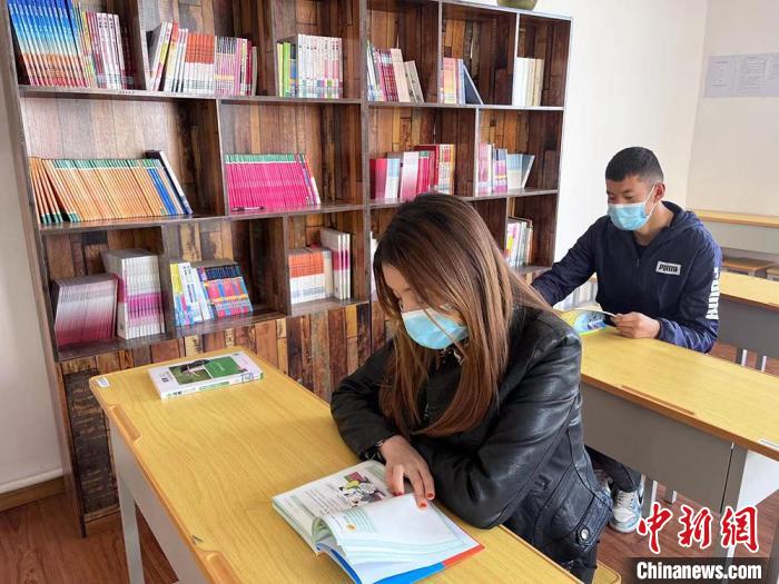 新疆兵團(tuán)第十四師皮山農(nóng)場(chǎng)五連職工群眾在農(nóng)家書屋閱讀書籍?!↑S璐璐 攝