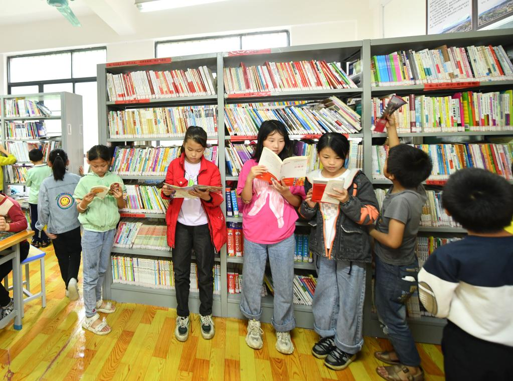 廣西都安瑤族自治縣大興鎮(zhèn)骨龍村小學(xué)位于大石山區(qū)深處,近年來(lái),隨著辦學(xué)條件的不斷改善,學(xué)校圖書室藏書越來(lái)越豐富,每天的課外活動(dòng)時(shí)間都吸引很多學(xué)生到圖書室閱讀或者借閱。新華社記者 黃孝邦 攝