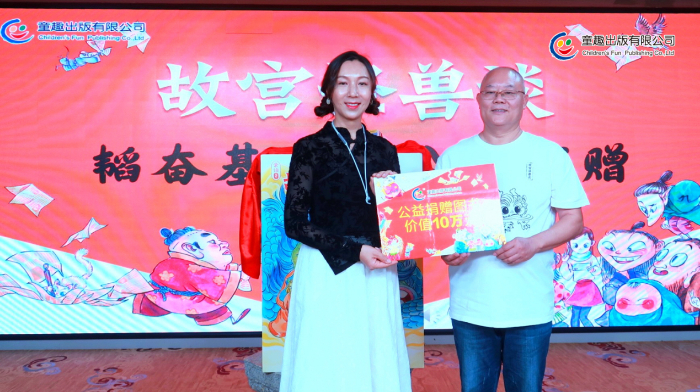 分享會上,童趣出版有限公司向韜奮基金會捐贈了《故宮怪獸談》及世界名著等價值10萬碼洋的作品。插畫師譚諾專門為韜奮基金會創(chuàng)作了公益閱讀畫作,永久免費授權韜奮基金會作為公益宣傳使用。